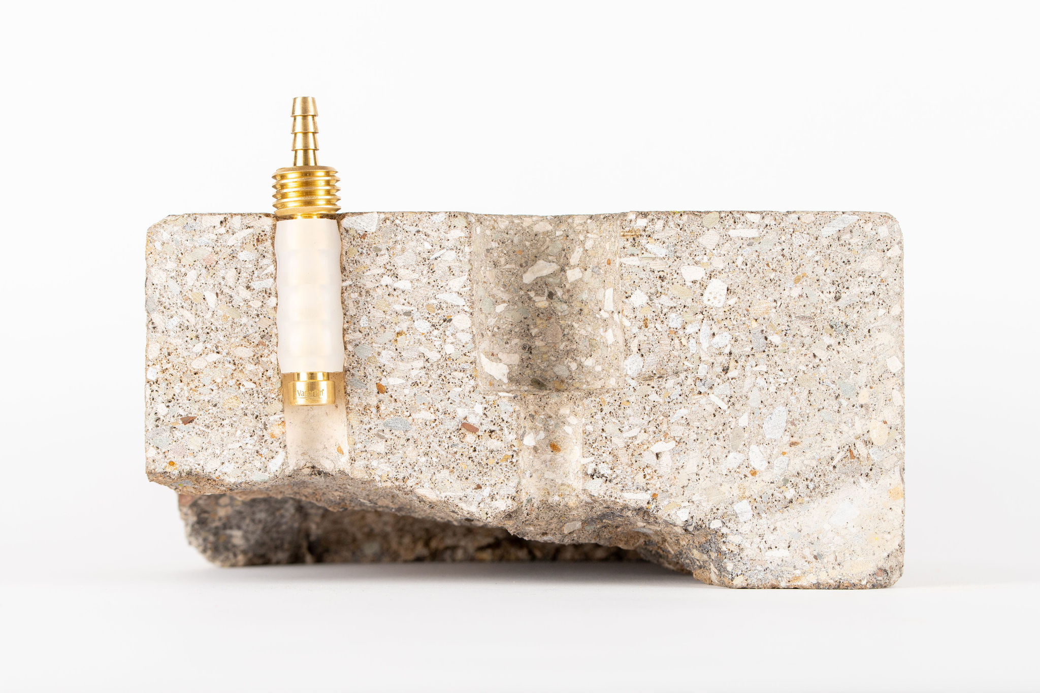 Brass Vapor Pin® sampling device connects to ¼-inch sample tubing (typically Nylon or Teflon®) with softer tubing, preferably Tygon®.  Brass Vapor Pin® is less durable than stainless steel, but they can be reused repeatedly with proper care. We recommend Brass Vapor Pin® devices for short-term installations, especially those installed in the stick-up configuration.