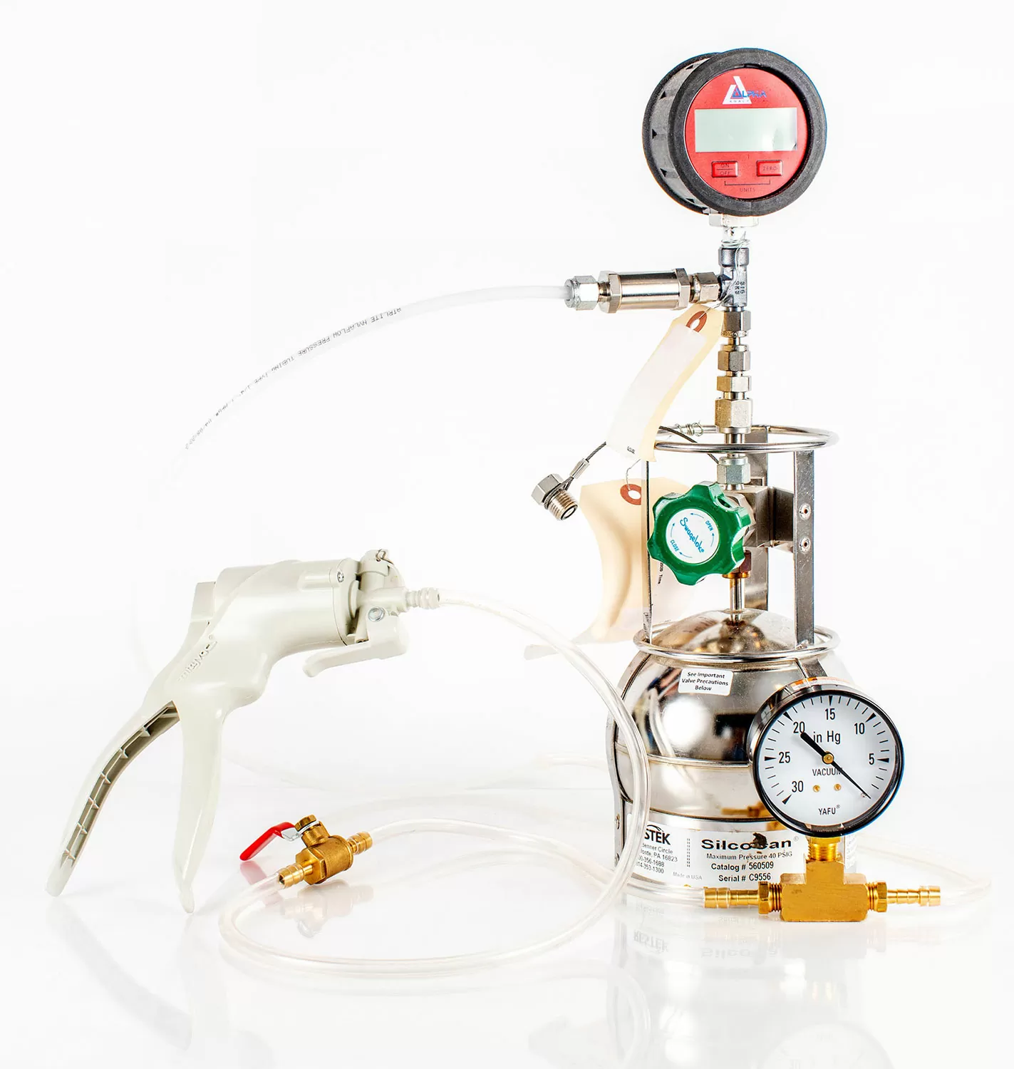 HPSET, 1/4 In. Union T Fitting, 1/4 In. Threaded Barb, Hand Pump, Vacuum Pressure Gauge 0 to 30, 1/4 In. to 1/4 In Mini Ball Valve