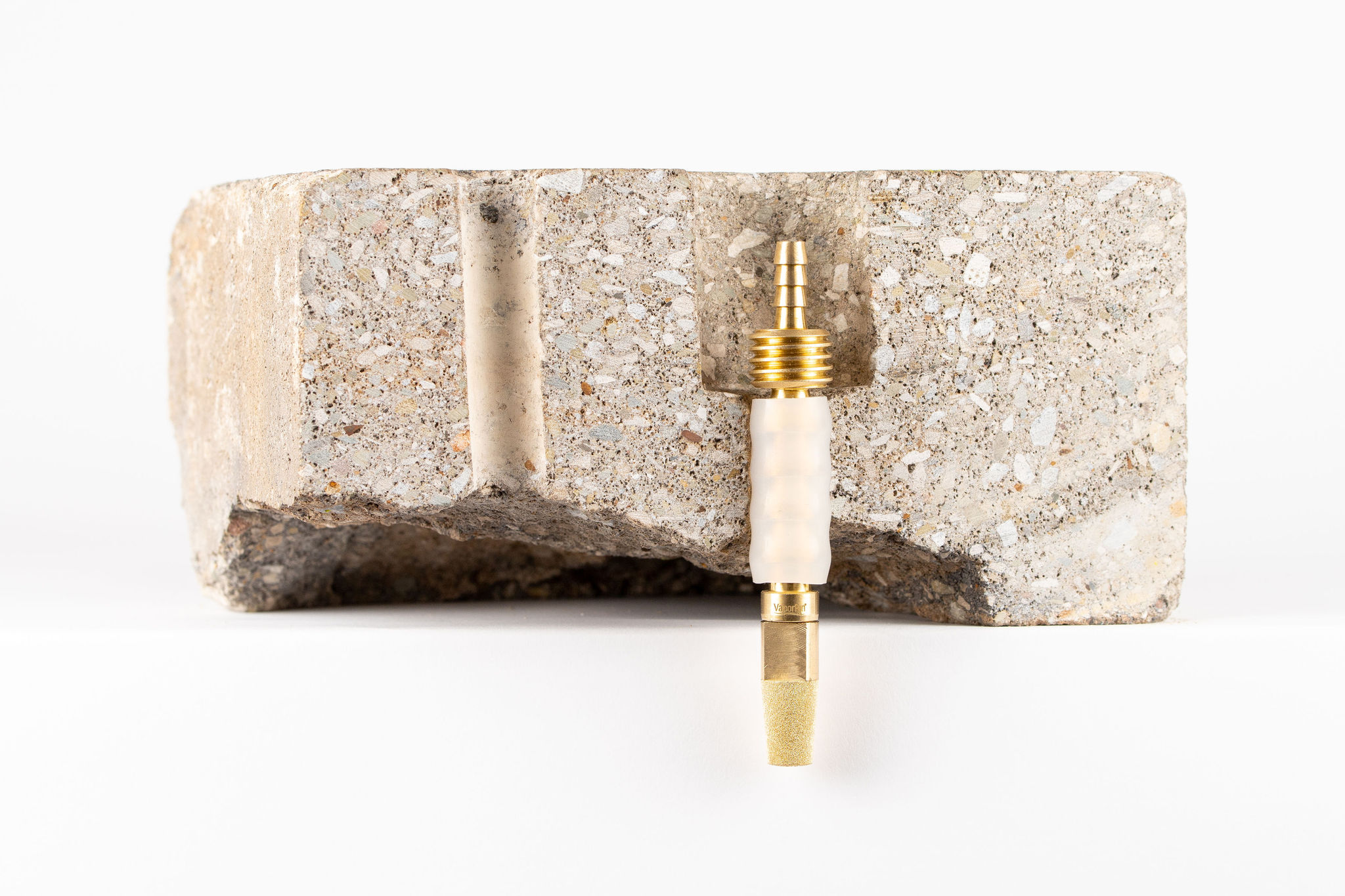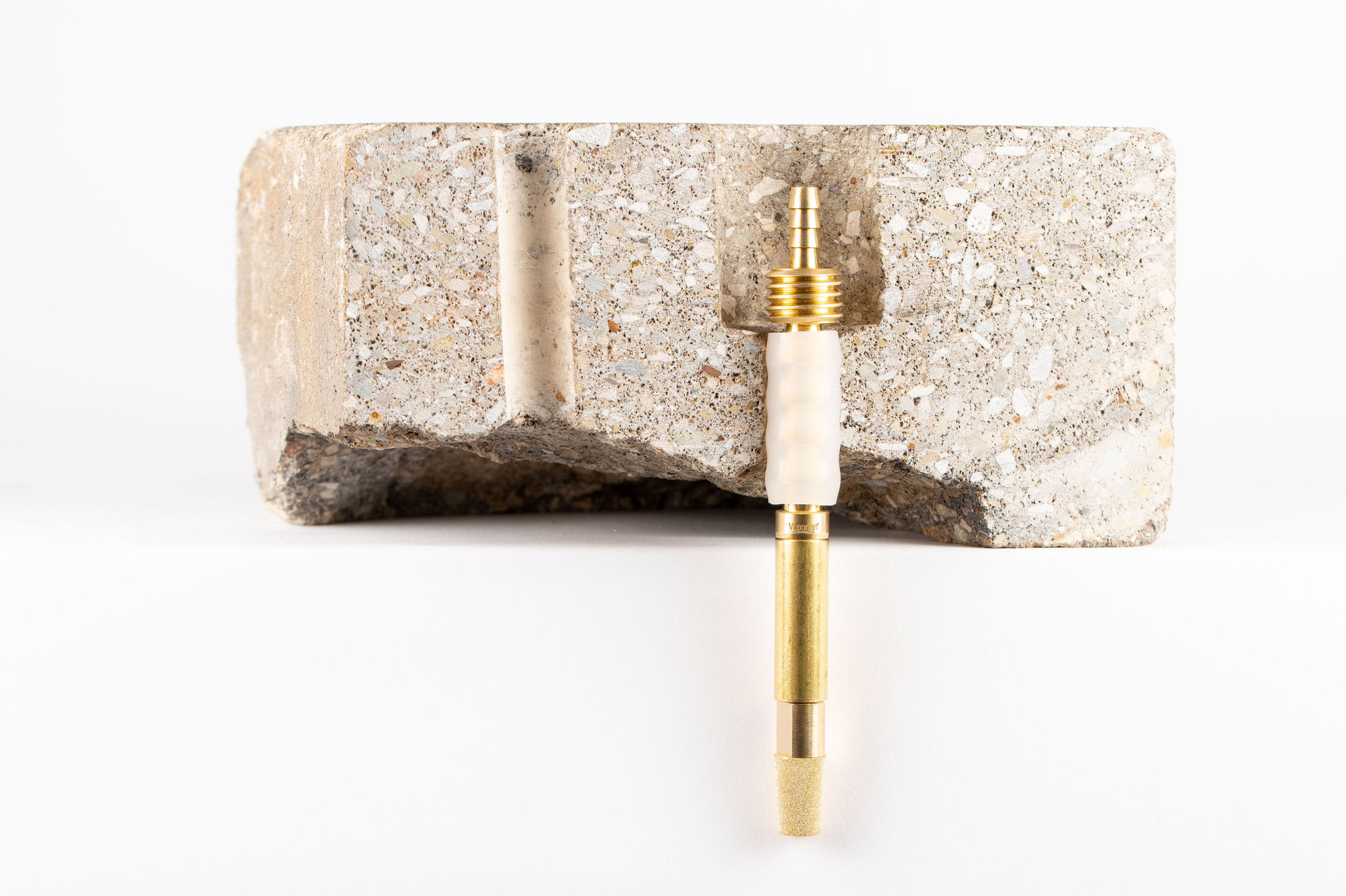 Filters are made of sintered porous metal which provide a means of filtering particulates from the vapor stream. Sintered porous metal consists of small spheres of metal fused in a furnace and are free of VOCs, unlike many commercially available aquarium filters. Filters are durable and can be used similarly to sieves; however, they may be somewhat harder to clean for reuse. Filters also allow the Vapor Pin® sampling devices and extensions to be tightened with a wrench.