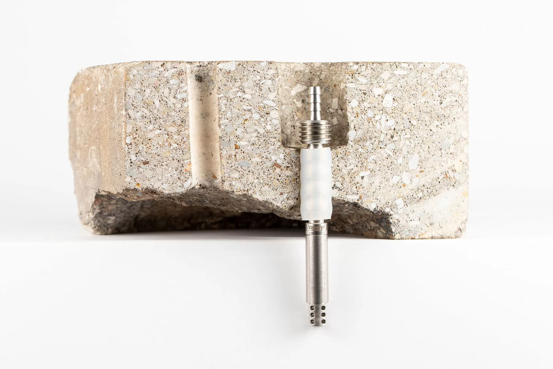 Sieves are attached to extensions or the Vapor pin® sampling device itself to allow air to enter from the sides. They are used to avoid clogging the pin or extension when samples are collected beneath the slab. Sieves are very robust and can be hammered into the gravel bed or concrete debris beneath the slab. Sieves also allow the Vapor Pin® devices and extensions to be tightened with a wrench.